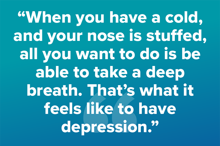 Then, the dark depressive thoughts come swooshing back in, and I feel ill all over again. There is no amount of soup or sleep that will cure this feeling. You don’t realize how underappreciated breathing is until you have a cold, and your nose is stuffed, and all you want to do is be able to take a deep breath. That’s what it feels like to have depression. I just want to be able to breathe again. I just want to feel okay.