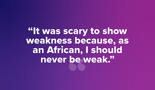 My anxiety attacks would come soon after and my depression would also get worse. I was scared to open up and talk to my friends and family about what was happening to me. It was scary to show weakness because, as an African, I should never be weak.