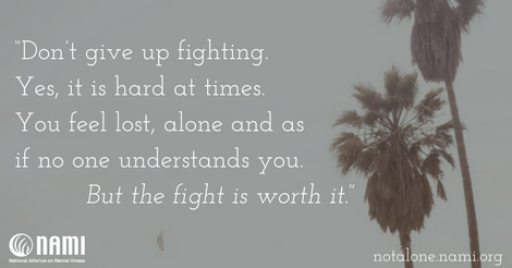 Don’t give up fighting. Yes, it is hard at times. You feel lost, alone and as if no one understands you. But the fight is worth it.