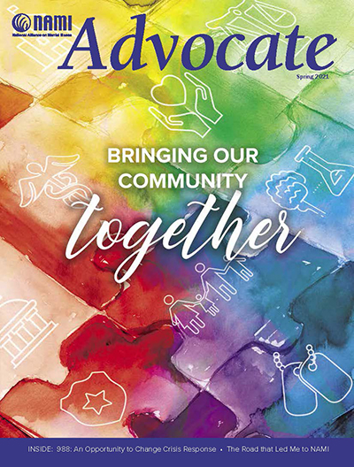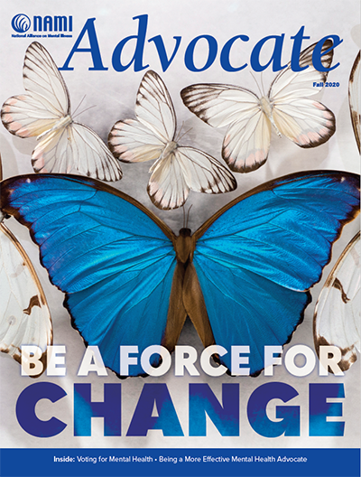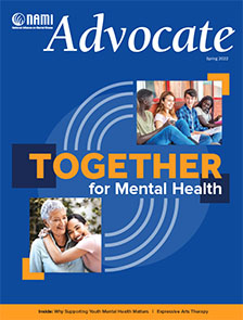 As a NAMI member, you can go to nami.org/register to create your free online account to be added to NAMI’s digital Advocate email distribution list. This will also give you access to our expanded digital archive library that includes Advocate issues as far back as 2014.