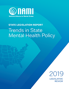 The report’s analysis is framed around the three pillars of NAMI 2020–2025 Strategic Plan: that people should get help early, get the best possible care and get diverted from justice system involvement. The report further breaks up legislation within “areas of focus” that represent issues of critical importance to NAMI’s mission and that also saw significant legislative action in 2019.
