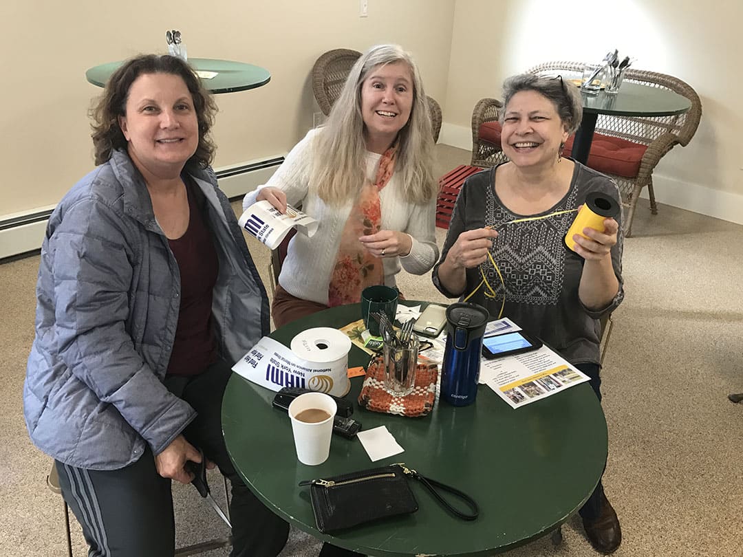 Our recently renovated church basement was the perfect place for the pie sale. It was a pleasure to share it with our pie-loving customers who either took home their frozen apple pies—to be baked at their own convenience—or sit at our café tables enjoying coffee or cider and generous slabs of on-site baked pumpkin pie. Baking instructions and information about NAMI were handed out to every customer.