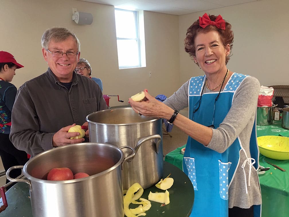 After our congregation decided that we wanted to raise funds for our local NAMI, we knew it should involve food! Because we live in apple country and the time was just right, we opted for baking, freezing, and selling apple pies plus a few seasonal pumpkin pies. The congregation came together during three sessions of the baker’s version of Henry Ford’s assembly line—I peel, you cut, he mixes, she rolls, someone bags the finished apple pies for the freezer and everyone sits down at the end to enjoy the few apple pies that were baked especially for “testing.”