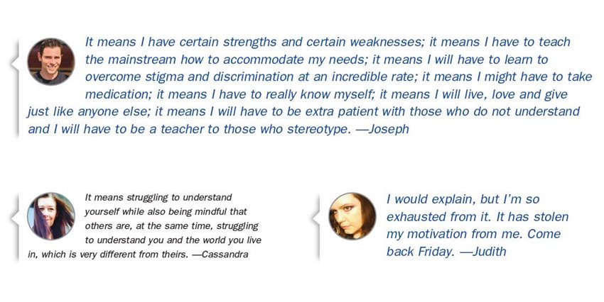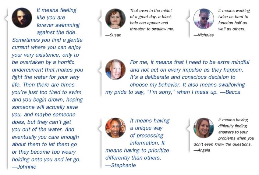 The DSM-5 is a guidebook that is followed by clinicians, psychiatrists, therapists and other mental health providers to help them decide how to evaluate and diagnose when patients come into their office, hospital or other treatment setting. But like the walls of a hospital, the guidebook may seem a little clinical and sterile. It doesn’t provide much insight into what those illnesses really translate into for real people. It doesn’t explain what it’s like to live day-to-day with a mental illness.