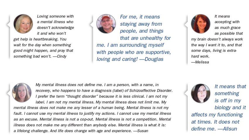 So rather than coming up with one, clinical definition of a mental disorder, mental illness, mental health condition or whatever name you'd like to call it, we asked people in our Facebook community who live with and experience mental illness on a daily basis how they define it. This is what they said.