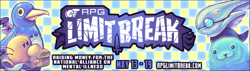 We have big hopes for our marathon this year! We have an initial goal of $100,000, and we’ve designed the schedule and incentives in a way to help that be achievable. This year, RPG Limit Break will take place from Saturday, May 13th through Friday, May 19th, 2017 in Salt Lake City, Utah. We’re slated to have over 150 attendees. But this is a live-streamed event, meaning anyone can tune in. All you need to do is visit our Twitch channel and check out the schedule—there’s no sign-up or information required to view the stream. (You can also check it out on NAMI.orgright here!)