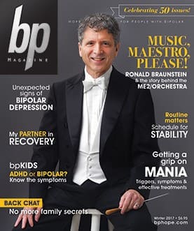 Now we can proudly say that our Winter 2017 edition will be our 50th issue! This is a huge milestone for any magazine and definitely for one that focuses solely on bipolar disorder. It’s been a long journey and, like our bipolar community, we have weathered many storms.