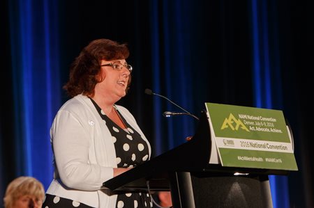As I waited to receive my award in Denver, my mind wandered back to my first NAMI National Convention in Chicago in 2011, where I watched NAMI members from all over the country receive national awards. I remembered being in total awe of all that they accomplished. It feels surreal, and a little overwhelming, to know that I have joined their ranks. I’d like to share my acceptance speech with those of you who were not there in person: