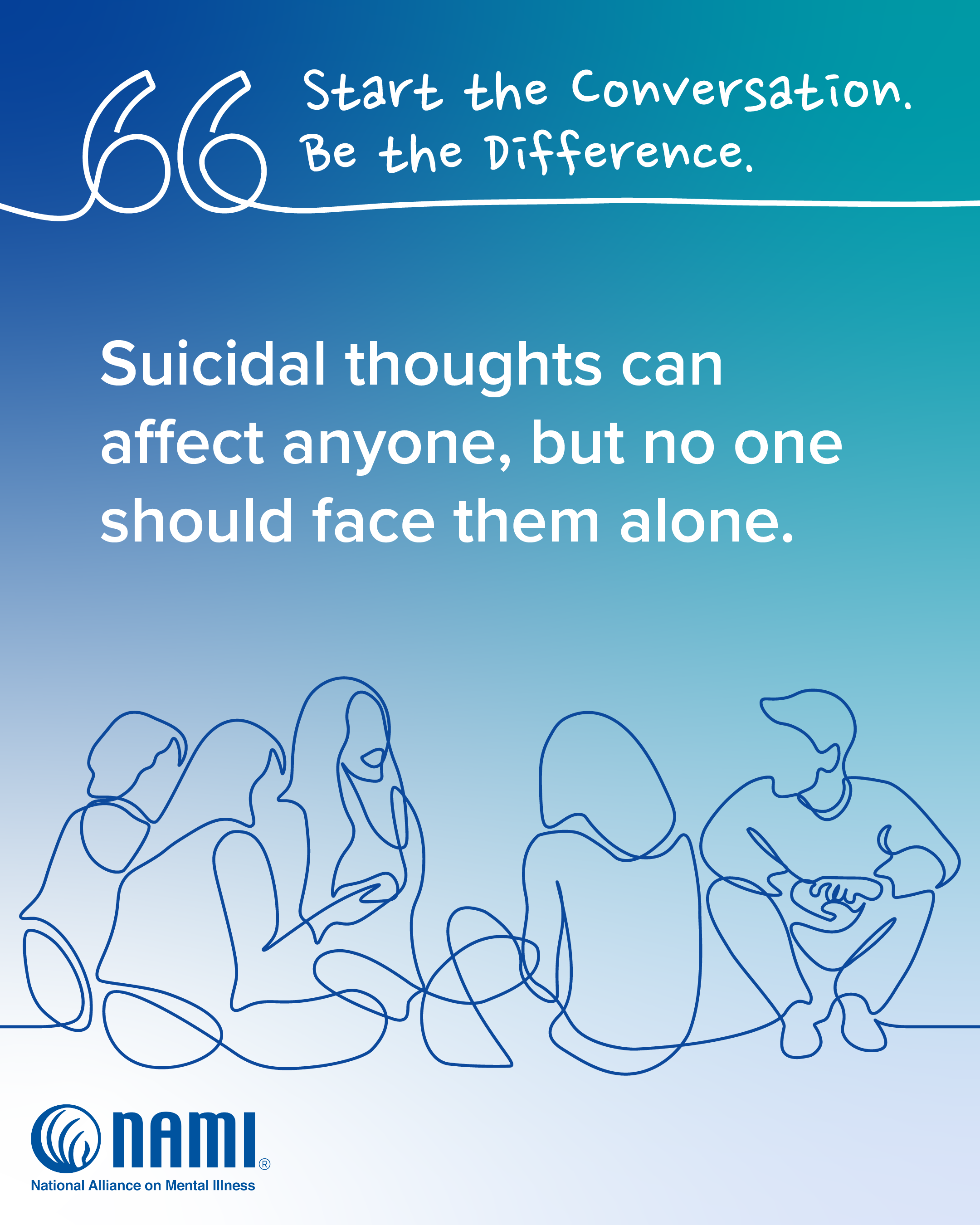 Don’t forget to tag us at @NAMICommunicate on Instagram and X and @NAMI on TikTok, LinkedIn, and Facebook. And be sure to use the hashtag #SuicidePreventionMonth in your posts.