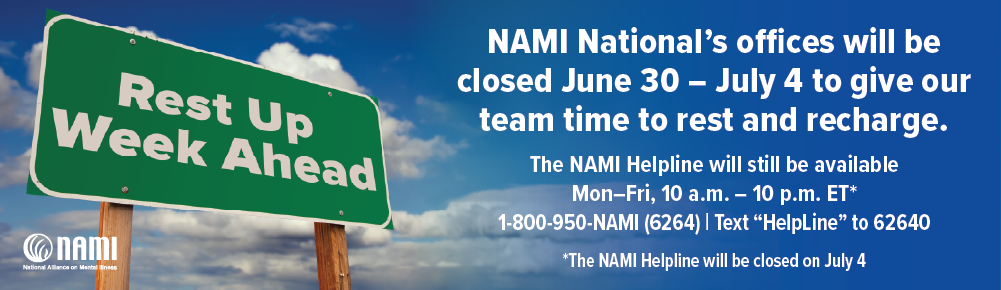 Rest Up Week aligns with the NAMI StigmaFree Workplace initiative, which encourages employers to commit to tangible steps to support their workers’ mental health. Join NAMI in prioritizing self-care and encouraging your workplace to do the same. Complete the form below to find out more about how you can bring mental wellness to your workplace.