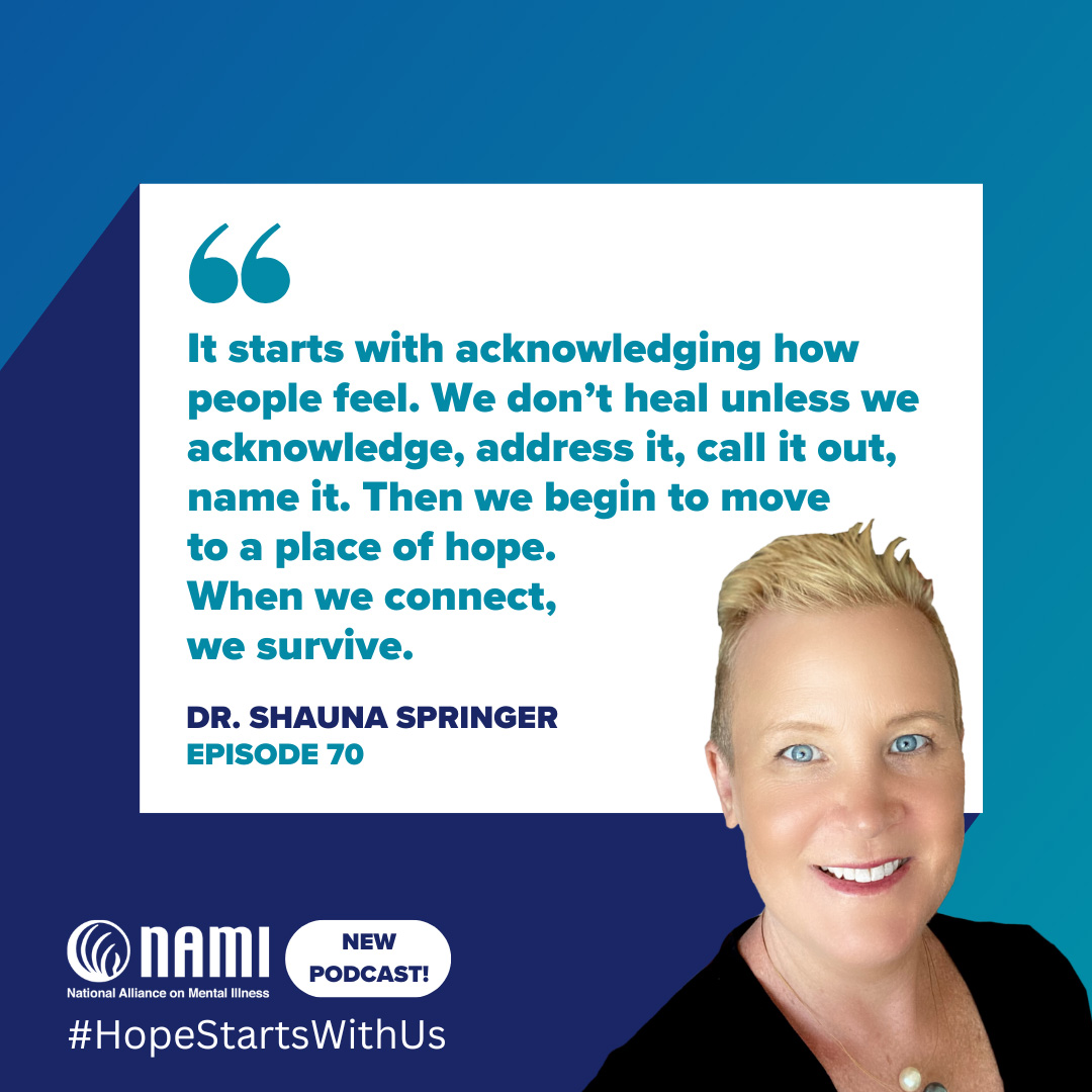 Care about you, care about the community, and care about all of us and our well-being. So with that said, this has been Hope Starts With us, a podcast by NAMI, the National Alliance on Mental Illness. If you are looking for mental health resources, you are not alone. To connect with the NAMI helpline and find local resources, visit nami.org/help. Text "helpline" to 62640 or dial 800-950-NAMI (6264). Or if you are experiencing an immediate suicide, substance use, or mental health crisis, please call and text 988 to speak with a trained support specialist or visit 988lifeline.org.