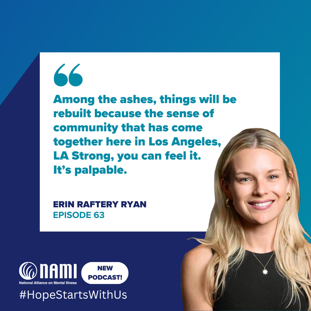 In the aftermath of the Los Angeles wildfires in January 2025, many of us have questions about how we can best support those who have lost their homes, their memories, and their places in the world. This episode of “Hope Starts With Us” features NAMI CEO Daniel H. Gillison, Jr. in conversation with NAMI West Los Angeles CEO Erin Raftery Ryan and Stella Mental Health Chief Psychologist Shauna “Doc” Springer. Through their conversation, the group shares stories from the fires, how to support our neighbors after traumatic events, the idea of ‘bright siding,’ and more.