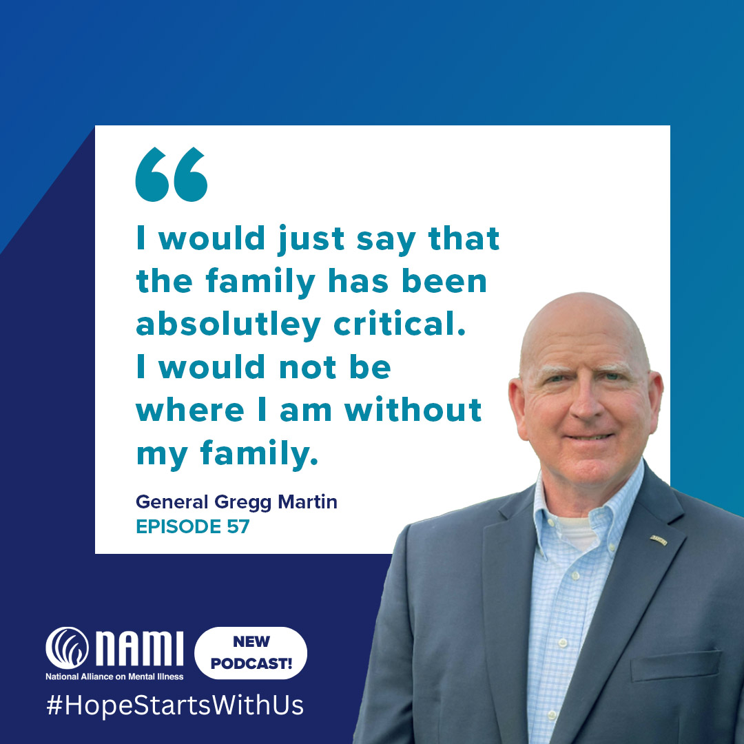 Today, I'm joined by an incredible leader who I heard their story first on NPR. And I've been eagerly waiting for the chance to talk with him. For our podcast, Hope Starts With Us. This is a man who has shared his story of experiencing late onset bipolar disorder while serving as a leader in the military. These days, he uses his time advocating for mental health access and reducing the stigma associated with mental illnesses as someone who has served in the military. Major General Gregg F. Martin retired from the military after a decorated career and is now a mental health advocate and author of "Bipolar General, My Forever War with Mental Illness." This book explores his career as a military leader and eventual diagnosis of bipolar disorder later in life, as well as what can be done within and outside of the military to diagnose and treat mental illness.