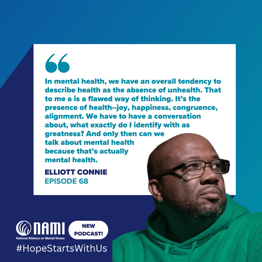 In this episode, NAMI CEO Daniel H. Gillison, Jr. is joined by Elliott Connie, a psychotherapist and advocate for mental health. This discussion focuses on Elliott Connie’s solution focused therapy practice, men’s mental health, and opening up conversations about mental health within Black communities.