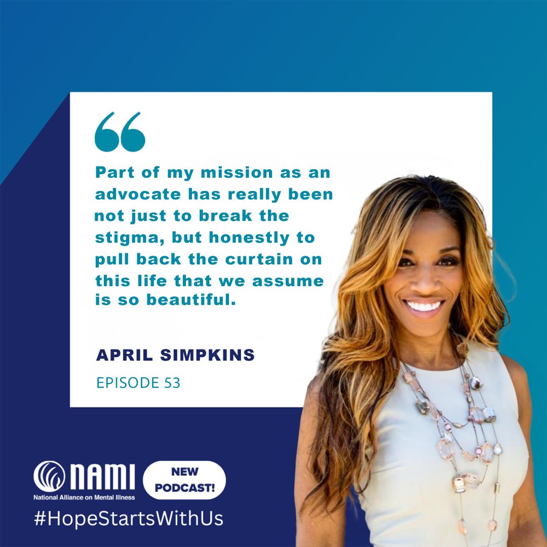 In this episode for Suicide Prevention Month, author and NAMI Ambassador April Simpkins talks with NAMI’s CEO Daniel H. Gillison, Jr., about how she has moved forward after the loss of her daughter, Cheslie Kryst, to suicide. Tune in to hear from April about how she intentionally models positive mental health habits for her children. This episode will help parents who are struggling with how to talk to their kids about cell phone use, screen time, and mental health.