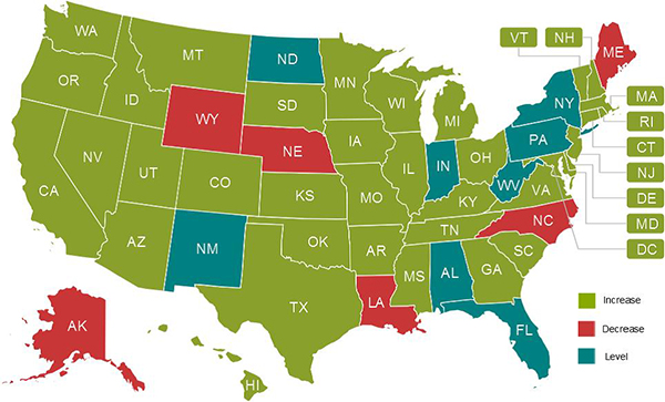 After years of deep cuts, states began to increase or maintain budget levels for mental health services. Mental health budgets increased in 37 states, stayed level in eight and decreased in only six. Arguably the most notable development was that Texas increased mental health spending by $259 million over two years, the largest increase in its history. South Carolina, which had cut the deepest in recent years, started to reverse that trend by increasing their fiscal year 2014 budget. While trends are encouraging, much remains to be done to restore cuts in state mental health budgets between 2008 and 2012.