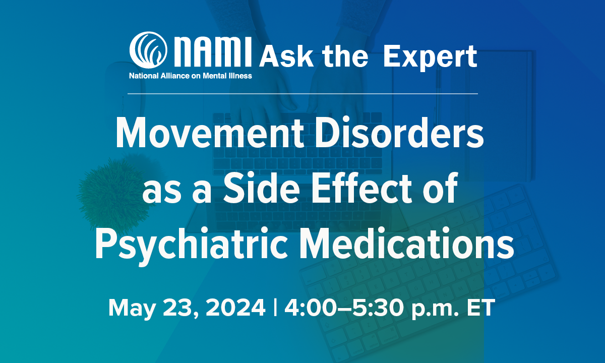 Join us for the upcoming NAMI Ask the Expert webinar, where we will focus on movement disorders that may occur as a result of taking some psychiatric medications.