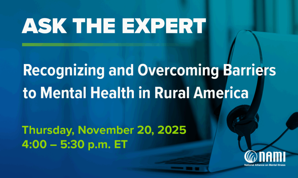 text “NAMI” to 62640, or email. In a crisis, call or text 988 (24/7).