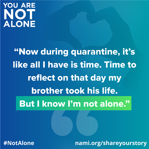 Now during quarantine, it’s like all I have is time. Time to reflect on that day my brother took his life. But I know I’m not alone. I know others have been affected too. And I personally just want to say condolences and prayers to any of those who lost family members during this pandemic. I hope you all stay strong, as I will too. Thank you.