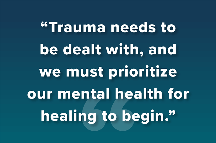 Trauma needs to be dealt with, and we must prioritize our mental health for healing to begin. If I can go through that long, dark tunnel and reach the other side, so can you.