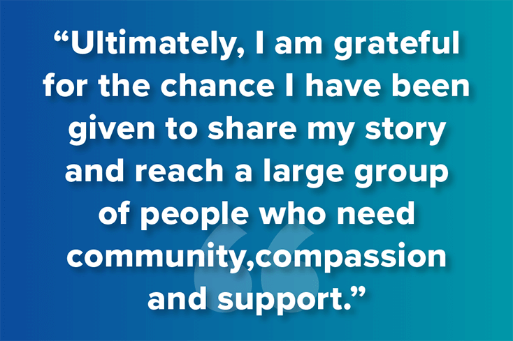Ultimately, I am grateful for the chance I have been given to share my story and reach a large group of people who need community, compassion and support. I hope that in some small way, I have changed the mental health conversation and inspired others to do so as well.