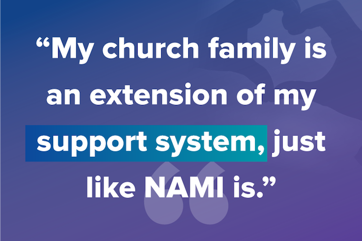 With the support of doctors and therapists, I can advocate for myself that recovery is possible for a person living with a mental illness. Now, when I get caught up in the spirit at church, my moods are stable enough for me to perform my daily tasks each week. Overall, I am thankful for the connection and support I received from NAMI St. Louis that has been beneficial to myself and my family. Thank you for allowing me to share my recovery story during Minority Mental Health Awareness Month this July. Take Care 💚