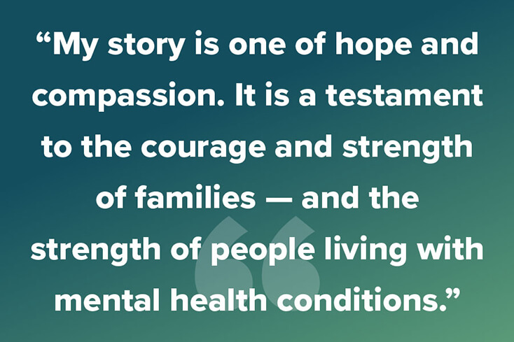 Ultimately, my story is one of hope and compassion. It is a testament to the courage and strength of families — and the strength of people living with mental health conditions.