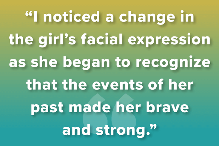 As we continued reading the book, I noticed a change in the girl’s facial expression as she began to recognize that the events of her past made her brave and strong. As an educator, I was able to teach her that when she gets to middle school, some of her fears (like learning English) will come, but that she has the capacity to be strong and overcome the challenges that come her way. While we talked through these fears, she was able to identify and express her feelings. She became more open, and even made eye contact with a big smile on her face.