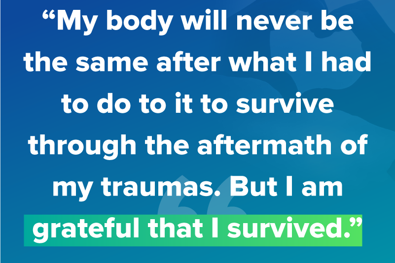 I am now self-supporting. I've been at my first full-time job for a year, working towards a career in health care. I’m in a serious relationship with the first partner who has ever made me feel safe.