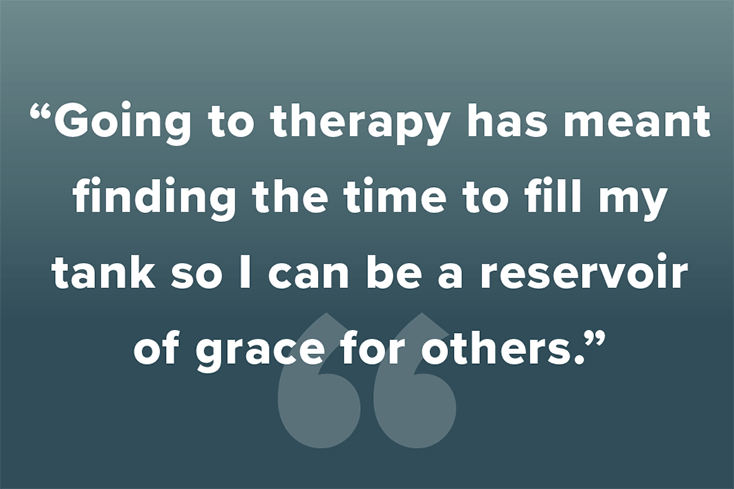 If my tooth was causing me pain, I wouldn't wait to go to the dentist. But I used to endure emotional and mental anguish for months before even thinking of going to a therapist. I wish I hadn't been so afraid of seeming weak or so quick to make excuses not to go. Sometimes, my mind needs help, and that’s ok. Going to therapy has meant finding the time to fill my tank so I can be a reservoir of grace for others. Instead of racing to go the distance through life to complete items on my to-do list, therapy reminds me to stop and check in, to make sure I also enjoy the view.