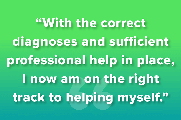 My greatest challenge was figuring out what else was “wrong” outside of these diagnoses. I wondered if I had another mental health condition and feared that maybe I was just “crazy.” I finally met the most amazing psychiatrist who put the pieces together: I have BPD. I have never felt so much relief in my life like I did when I heard those words. With the correct diagnoses and sufficient professional help in place, I now am on the right track to helping myself.