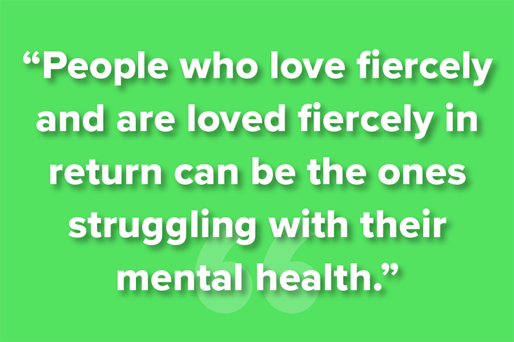 But she wasn’t. Neither are you. We live in a divisive time, but we are all in this thing together. Mental illness is a human condition, and we must end the stigma around the conversation by treating it as such. It isn't about numbers, it's about people. I truly believe that we can erase this stigma and help the many people who desperately need it.