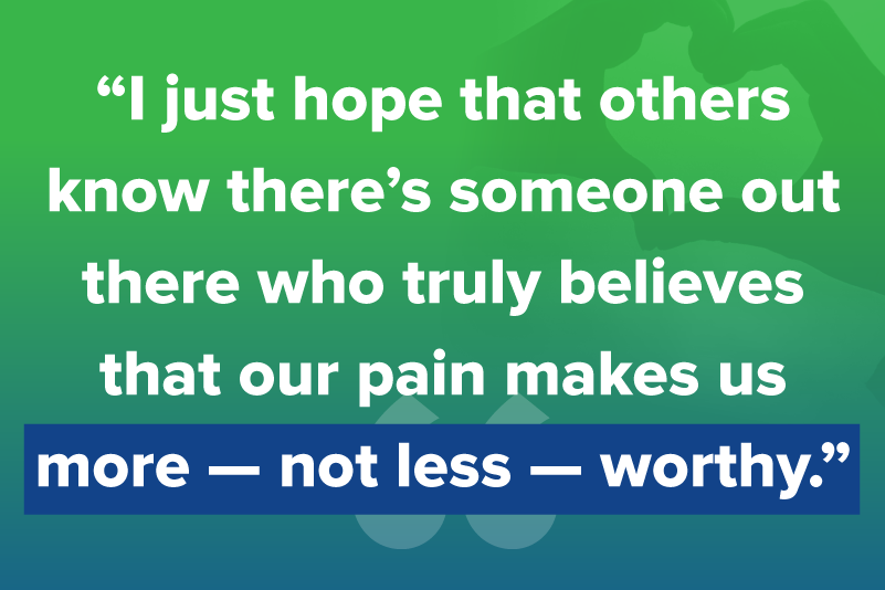 Each and every time I talk about it, I feel less like an embarrassment and more like a hero. I don’t say this to minimize the life-altering pain that PD has caused me and will likely continue to cause me. I just hope that others know there’s someone out there who shares your pain, who sees your pain and who truly believes that our pain makes us more — not less — worthy.