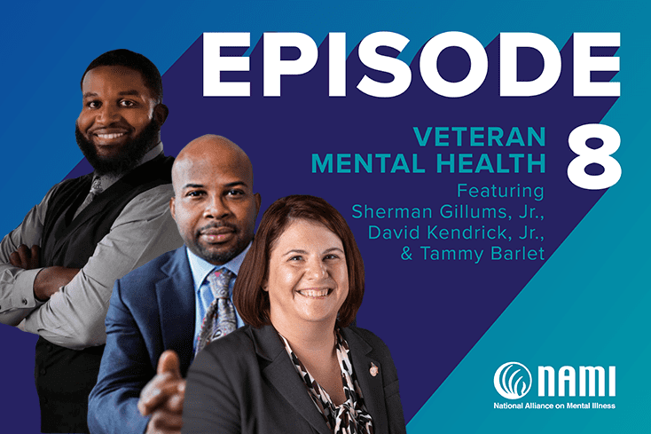 In this episode of NAMI’s podcast, NAMI CEO Daniel H. Gillison Jr. speaks with three veterans about their experiences with mental health: Marine veteran and NAMI’s former chief strategy officer Sherman Gillums Jr.; Army veteran and NAMI Ambassador David Kendrick Jr.; and Coast Guard Veteran and Deputy Legislative Director of Veterans of Foreign Wars Tammy Barlet.