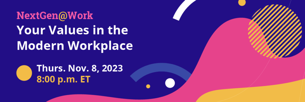 Thursday, November 8 | 8:00 PM EST In our upcoming session, NextGen@Work: Your Values in the Modern Workplace, we’ll be exploring how the idea of work-life balance has shifted over time and what it means for you as you step into the workplace. Get ready for an interactive session filled with tips and tricks that […]
