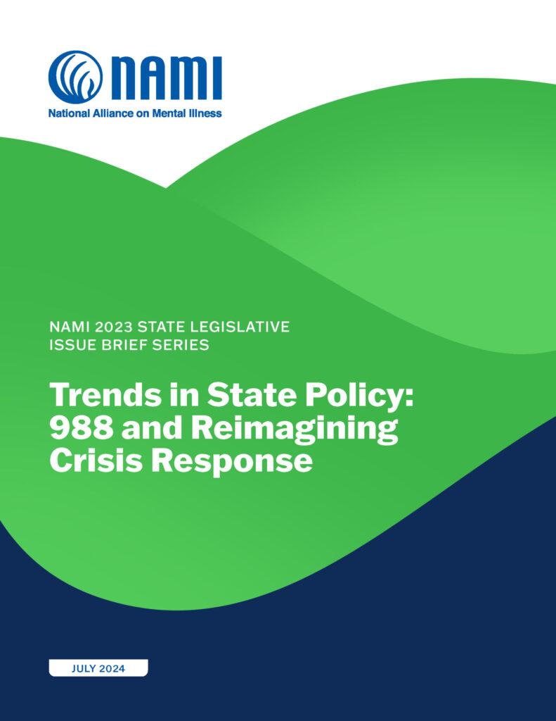 In recognition of the second anniversary of 988’s nationwide availability, the National Alliance on Mental Illness (NAMI) released a new publication, Trends in State Policy: 988 and Reimagining Crisis Response. This issue brief highlights state legislation passed in 2023 that works to reimagine the mental health crisis response system.