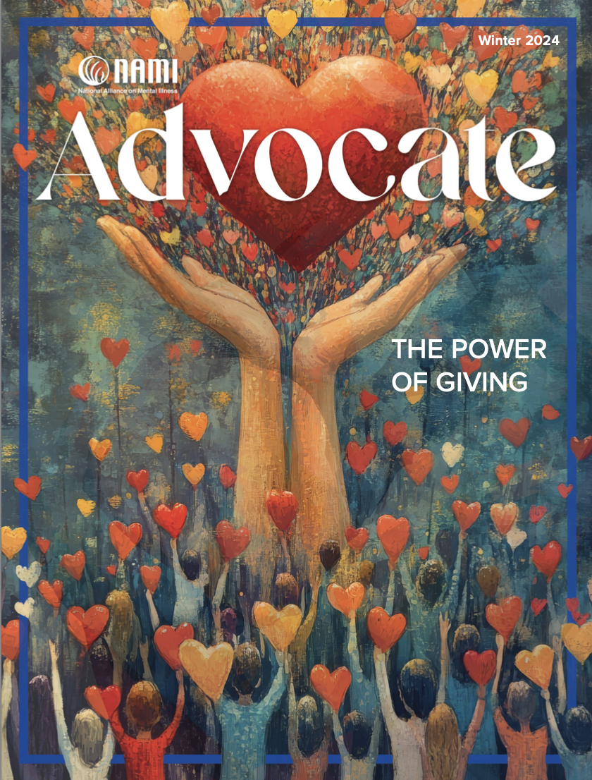 As a NAMI member, you can go to nami.org/register to create your free online account to be added to NAMI’s digital Advocate email distribution list. This will also give you access to our expanded digital archive library that includes Advocate issues as far back as 2014.