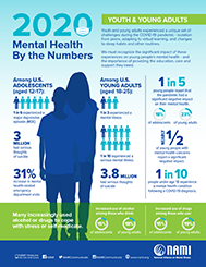 Our 2020 Mental Health by the Numbers illustrate the unique set of challenges youth and young adults experienced during the COVID-19 pandemic. We must recognize the significant impact of these experiences on young people’s mental health — and the importance of providing the education, care and support they need.